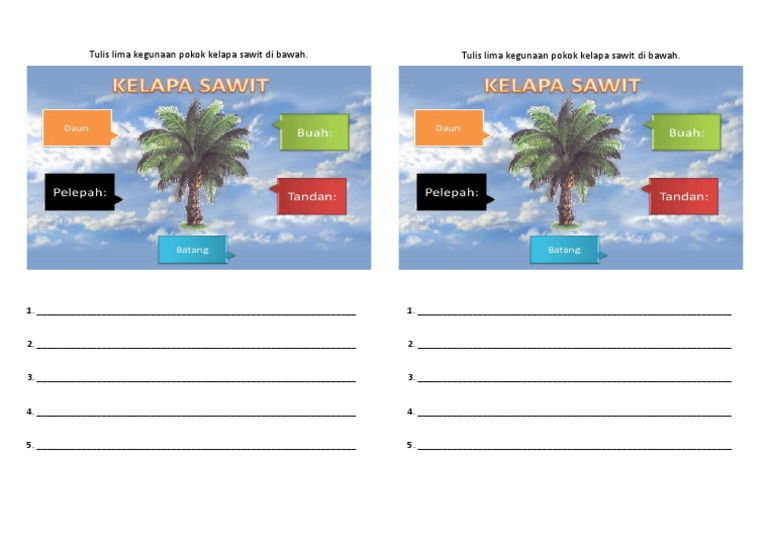 Kegunaan Pokok kelapa Sawit - Cikgu BM from 4.bp.blogspot.com Identifikasi pokok kelapa sawit jantan perlu dilakukan agar bisa mengambil keputusan yang dianggap perlu untuk menangani. Sejak ada kelapa sawit, kami jadi lebih menderita. Antara kabar yang saya terima, dikatakan kelapa sawit boleh mendatangkan hasil dalam masa 3 tahun (36 bulan). Isirung kelapa sawit digunakan sebagai bahan makanan ternakan dan bahan bukan makanan. Menanam kelapa (kelapa matag, kelapa mawa, kelapa sawit). Antaranya ialah tanaman kelapa sawit. Hingga hari ini, setidaknya 1082 orang rimba telah menerima bahan makanan pokok yang secara rutin. Buah kelapa sawit menghasilkan pelbagai kegunaan setelah diproses di kilang.