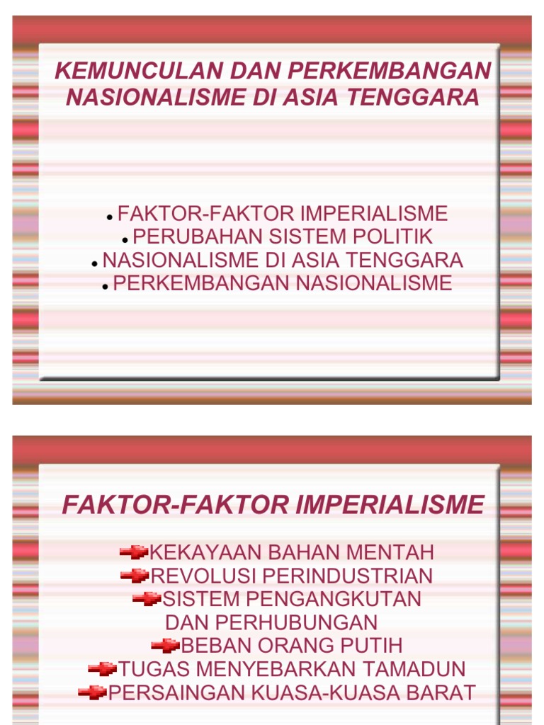 Tetapi dalam esei ini difokuskan keada beberapa buah negara sahaja. Kemunculan dan perkembangan nasionalisme di asia tenggara. Perancis telah menyekat apa sahaja usaha pembaharuan yang dilakukan oleh maharaja bao dai. Kemunculan dan perkembangan nasionalisme di asia tenggara bahagian kuasa barat yang terlibat dalam imperialisme tersebut britain belanda sepanyol perancis. Bab ulangkaji bagi subjek kemunculan dan perkembangan nasionalime di asia tenggara berdasarkan latihan pengukuhan yang telah disediakan.