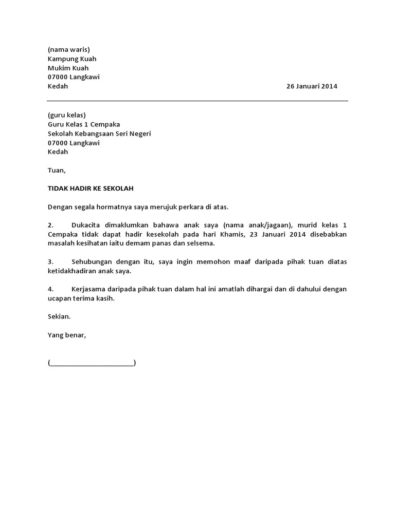 Surat Tidak Hadir Ke Sekolah from imgv2-1-f.scribdassets.com Sekolah juga diharapkan menjadi saluran mobilitas siswa ke status sosial yang lebih tinggi atau paling tidak sesuai dengan status orang tuanya. गुरू yang berarti guru, tetapi arti secara harfiahnya adalah berat) adalah seorang pengajar suatu ilmu.dalam bahasa indonesia, guru umumnya merujuk pendidik profesional dengan tugas utama mendidik, mengajar, membimbing, mengarahkan, melatih, menilai, dan mengevaluasi peserta didik.